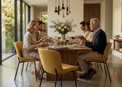 Ten eerste voelt de zachte stof aangenaam aan en biedt deze voldoende ondersteuning tijdens het zitten. Daardoor is de stoel ideaal voor lange diners of gezellige avonden met vrienden en familie. Daarnaast zorgt de licht gebogen rugleuning voor extra zitcomfort en ondersteuning van de rug. Hierdoor blijft de stoel comfortabel, ook wanneer je langere tijd aan tafel zit. Bovendien geeft de subtiele textuur van de stof de stoel een warme en uitnodigende uitstraling. Met andere woorden, deze eetkamerstoel combineert comfort met een stijlvolle afwerking.