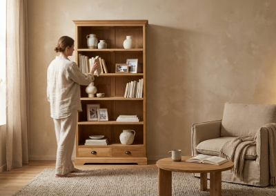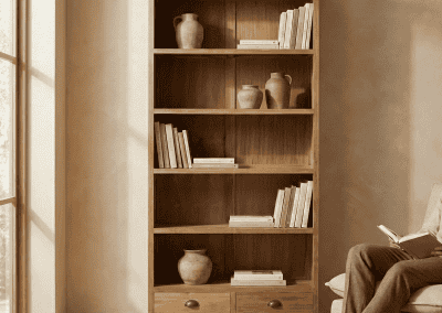 Teak Boekenkast Senja biedt een mooie balans tussen tonen en opbergen in een stijlvol en rustig interieur. Allereerst zorgt het massieve teak voor een warme en natuurlijke uitstraling die direct sfeer toevoegt aan de ruimte. Daarnaast maken de open vakken het mogelijk om boeken en accessoires zichtbaar te presenteren. Bovendien zorgen de zichtbare houtnerven ervoor dat iedere kast uniek is in karakter. Ook draagt de stevige constructie bij aan duurzaamheid en stabiliteit, waardoor het meubel geschikt is voor dagelijks gebruik. Dankzij het tijdloze ontwerp past deze kast moeiteloos binnen zowel moderne als landelijke interieurs. Kortom, dit model combineert praktische opbergruimte met een natuurlijke en elegante uitstraling.