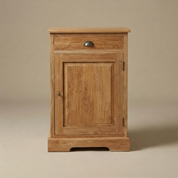 Teak Dressoir Senja 1 Deur is ideaal als bijzetkast in de woonkamer, hal of slaapkamer waar compactheid en functionaliteit samenkomen. Allereerst zorgt het massieve teak voor een warme en natuurlijke uitstraling die direct sfeer toevoegt aan de ruimte. Daarnaast geeft het compacte formaat dit meubel een veelzijdige toepassing binnen kleinere woonruimtes. Bovendien maken de zichtbare houtnerven ieder exemplaar uniek in karakter. Ook draagt de stevige constructie bij aan duurzaamheid en stabiliteit, wat essentieel is bij dagelijks gebruik. Dankzij de combinatie van een lade en een gesloten kast ontstaat er een praktische en overzichtelijke indeling. Kortom, dit model combineert compacte afmetingen met hoogwaardige kwaliteit en tijdloos design.