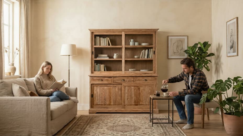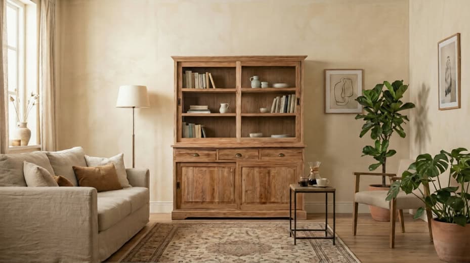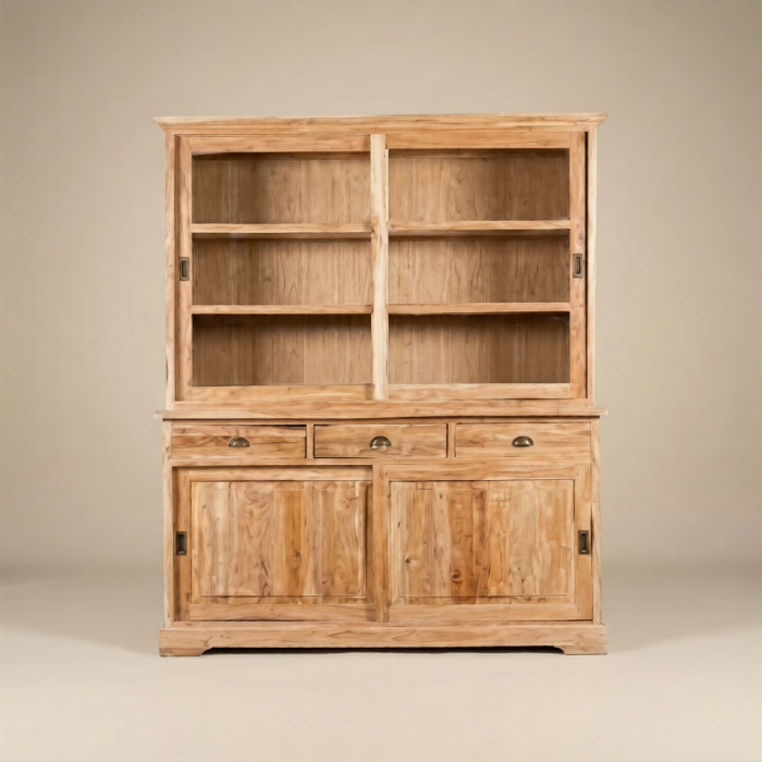Teak Kast Senja is ontworpen voor wie houdt van overzicht en een opgeruimd interieur met een warme uitstraling. Allereerst zorgt het massieve teak voor een natuurlijke basis die direct karakter toevoegt aan de woonkamer of eetkamer. Daarnaast combineert deze kast open en gesloten opbergruimte, waardoor functionaliteit en presentatie perfect samenkomen. Bovendien maken de zichtbare houtnerven ieder exemplaar uniek in uitstraling. Ook draagt de stevige constructie bij aan duurzaamheid en stabiliteit, wat essentieel is bij een meubel van dit formaat. Dankzij het klassieke en tijdloze ontwerp past deze kast moeiteloos binnen zowel landelijke als moderne interieurs. Kortom, dit model combineert overzicht, opbergruimte en natuurlijke elegantie in één krachtig meubel.
